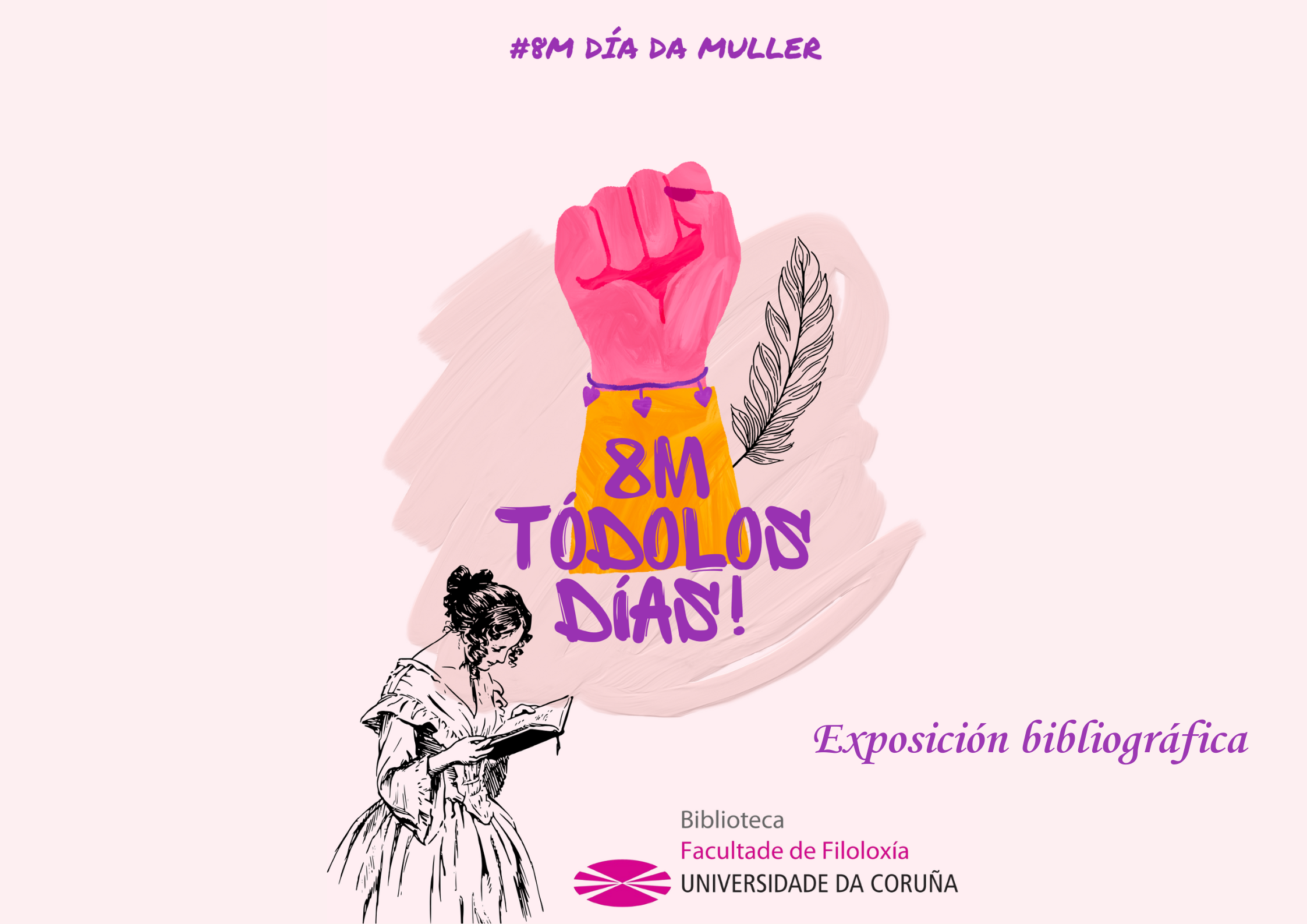 Exposicíon bibliográfica cunha selección de obras de carácter feminista co gallo da celebración do Día Internacional da Muller o 8 de marzo.
