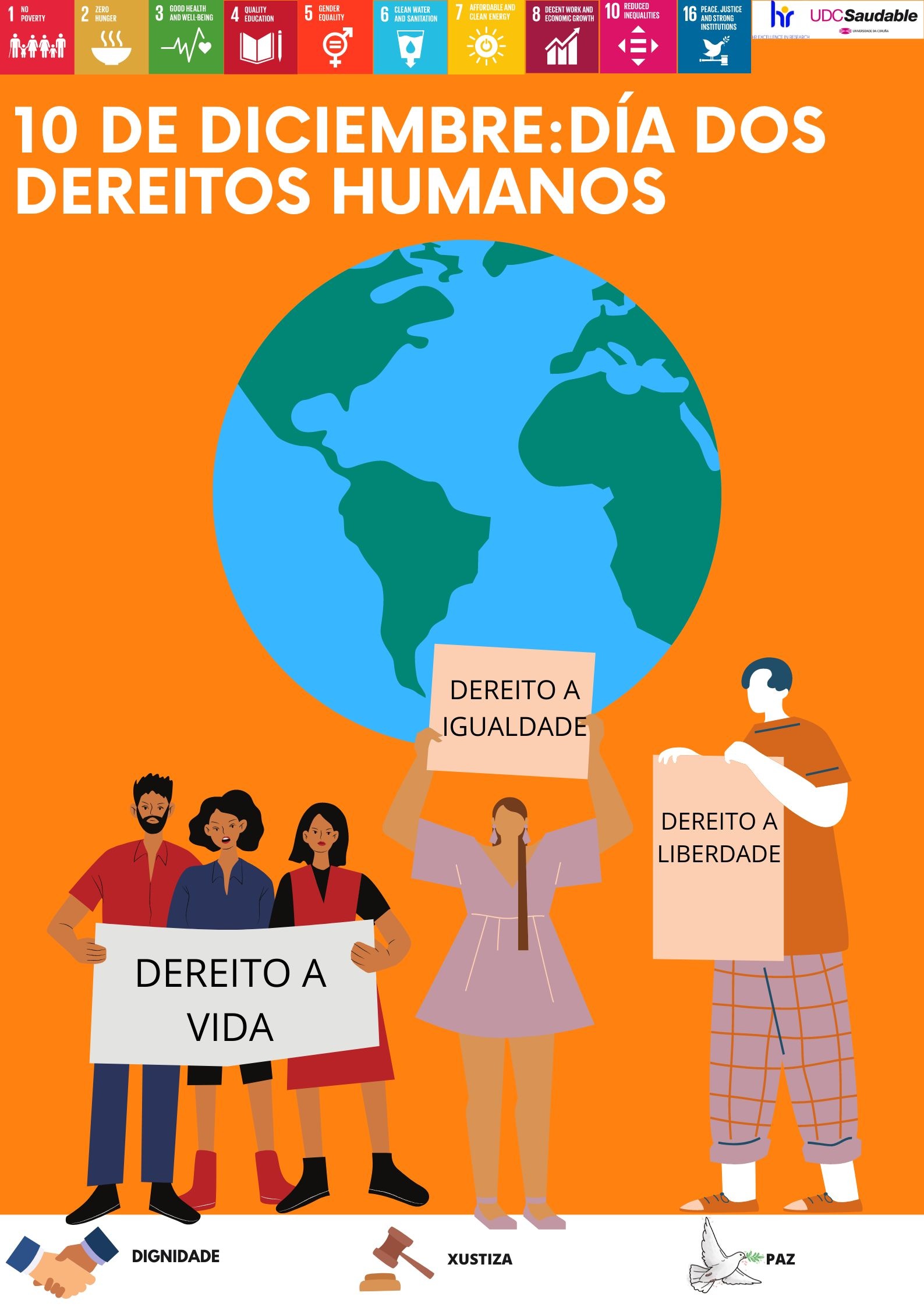O 10 de decembro celébrase o Día dos Dereitos Humanos, coincidindo co aniversario da Declaración Universal dos Dereitos Humanos, que foi aprobada en 1948. Nela se recollen os dereitos humanos: Dereito á vida, liberdade (en todas as súas modalidades: liberdade de expresión, liberdade). de circulación no territorio do Estado...) á igualdade e á non discriminación; xa que toda persoa ten dereitos e liberdades sen distinción de raza, cor, sexo, lingua, relixión, opinión política, orixe nacional ou social, posición económica, nacemento ou calquera outra condición.