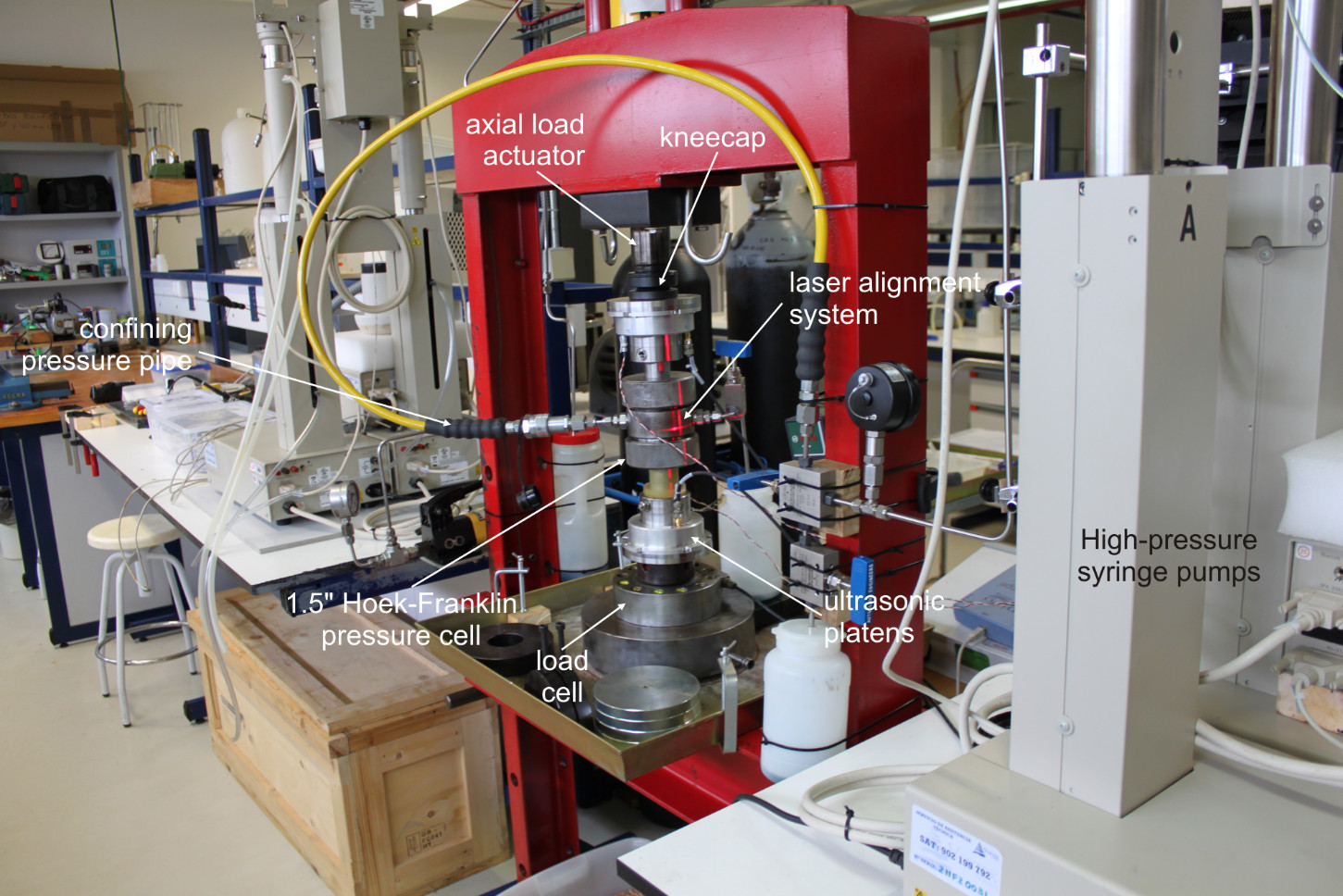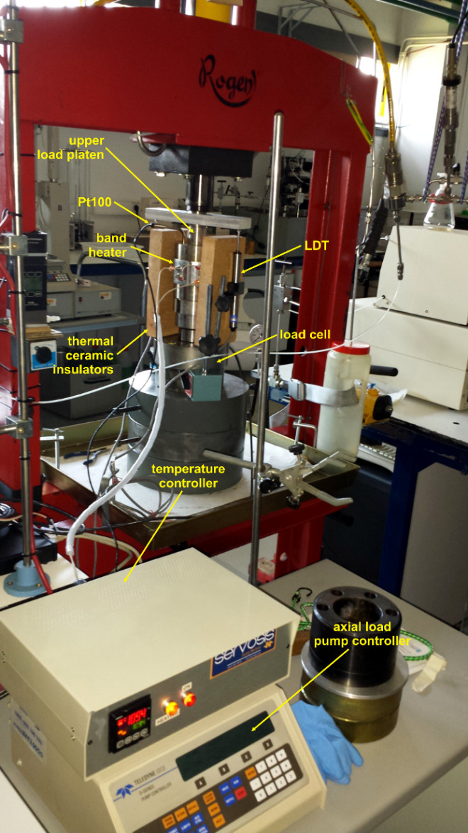 LaMEROC dispone de celdas porta-testigos de diversos tipos y diámetros (38.1, 54 mm) con las que es posible alcanzar presiones de confinamiento equivalentes a 70 MPa a distintas temperaturas. Dichas celdas están preparadas para inyectar simultáneamente fluidos monofásicos o bifásicos al tiempo que se registran distintas variables físico-quimio-mecánicas.