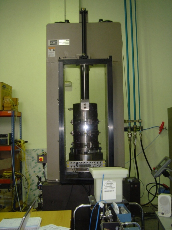 LaMEROC dispone, en sus instalaciones del CITEEC de un equipo de ensayos de altas prestaciones que representa, en la actualidad, el estado del arte en su categoría: una máquina de ensayos triaxial fabricada por la empresa MTS Systems Corporation (modelo 815). Este equipo puede complementarse con algunos de los elementos descritos en las secciones anteriores. De modo resumido, las capacidades de este equipo se resumen a continuación: