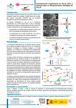 En el contexto del Proyecto Compostilla (OXY CFB 300) del Programa Energético Europeo para la Recuperación el LaMeRoc desarrolló distintos trabajos, entre ellos la caracterización de materiales de interés (formaciones sello o almacén) de la Planta de Desarrollo Tecnológico de Hontomin (Burgos).
