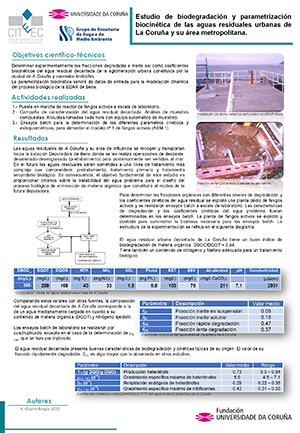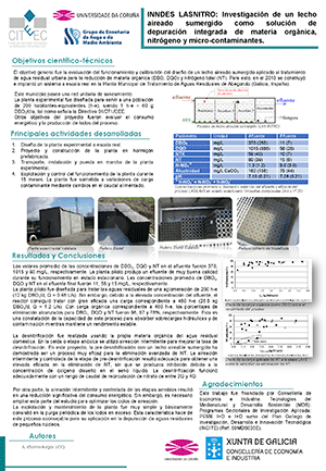 Evaluación del funcionamiento y diseño de un lecho aireable sumergido aplicado al tratamiento de agua residual urbana para la reducción de materia orgánica y nitrógeno total. Para esto, en el 2010 se construyó un sistema a escala real y se la instaló en la Planta Municipal de Tratamiento de Aguas Residuales de Abegondo (Galicia, España). Abegondo posee una red unitaria de saneamiento.