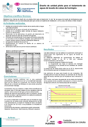 Establecer los criterios de diseño de una planta móvil para el tratamiento “in situ” de las aguas de lavado de hormigoneras para obtener un efluente con la calidad adecuada para que cumpla con objetivos de reutilización, o en su caso, de vertido a medio receptor.