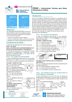 Con el fin de mejorar la planificación, el proyecto y la construcción de las infraestructuras de abastecimiento y saneamiento, la Administración Hidráulica de Galicia, integrada por “Aguas de Galicia” y la “Empresa Pública de Obras y Servicios Hidráulicos”, consideró de gran interés el elaborar una serie de textos técnicos que sirviesen de guía y referencia.