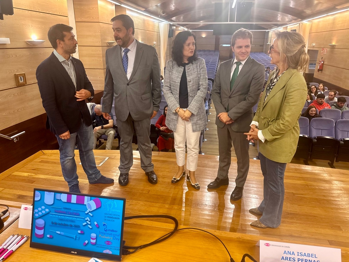 Ferrol, 8 de outubro de 2025.- O Salón de Actos Concepción Arenal do Campus Industrial de Ferrol acolleu, este mércores 8 de outubro, unha xornada formativa sobre farmacoloxía organizada pola Universidade da Coruña (UDC), a través da Facultade de Enfermaría e Podoloxía, e máis polo Colexio Oficial de Podoloxía de Galicia (COPOGA) para conmemorar o Día Internacional da Podoloxía. Un ano máis, esta iniciativa enmárcase dentro do programa de actividades do XI Outubro Saudable, promovido pola UDC Saudable, un servizo dependente da Vicerreitoría do Campus de Ferrol e Responsabilidade Social.