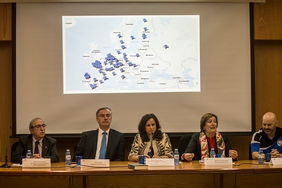 From left to right: Amergin's Director Antonio R. de Toro, former Ambassador of Ireland David J. Cooney, Vice Provost Nancy Vázquez, the Dean of the College of Arts and Letters María Jesús Lorenzo, and Irish football player and manager Wenceslao García.