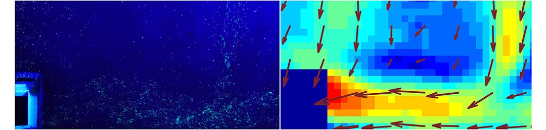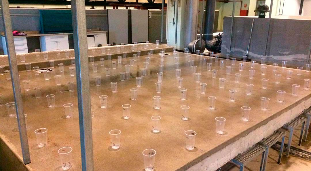 Además, se ha desarrollado una metodología LSPIV (velocimetría de imagen de partículas a gran escala) de bajo coste para la caracterización de la escorrentía generada en la superficie de los simuladores de lluvia del laboratorio. Este método utiliza partículas fluorescentes e iluminación UVA para evitar la interferencia de las gotas de lluvia en las imágenes del flujo. Estas imágenes son tomadas mediante cámaras convencionales y utilizadas posteriormente para determinar el movimiento, y por lo tanto la velocidad, de las partículas presentes en el flujo.