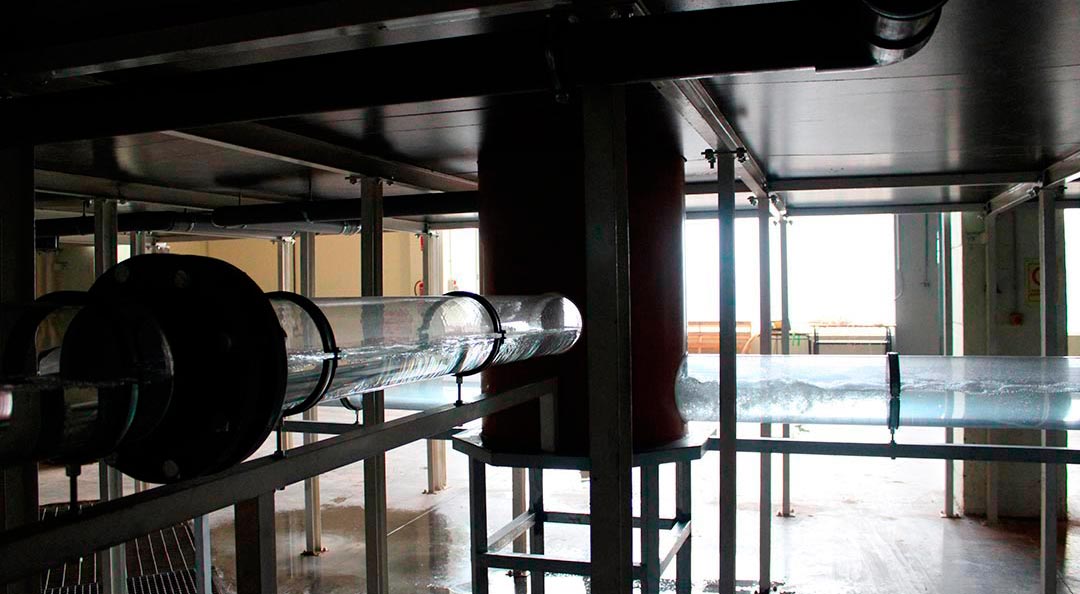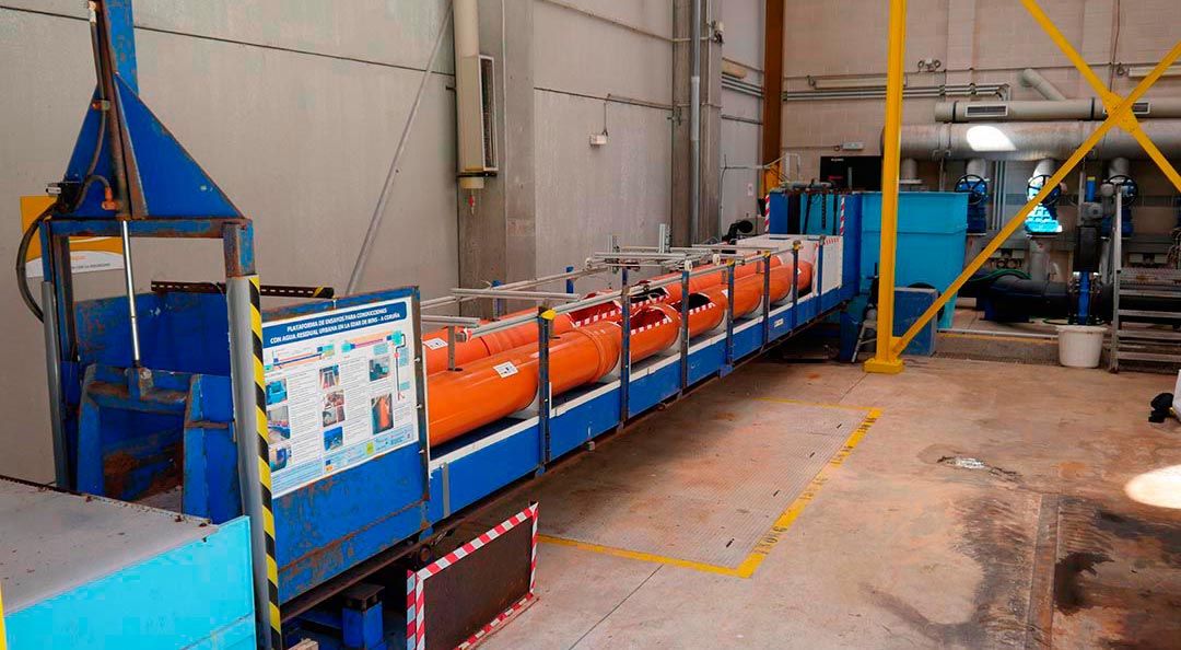 Banco de ensayos que utiliza agua residual urbana real para el análisis del funcionamiento de diferentes tipos de conducciones frente a procesos físicos y biológicos que se dan en las redes de saneamiento, como por ejemplo procesos de acumulación, erosión y transporte de sedimentos. Esta instalación se encuentra en el edificio de pretratamiento de la EDAR de A Coruña para contar con un suministro continuo y representativo de agua residual, y cuenta con el soporte y la instrumentación de los Laboratorios de Hidráulica y de Ingeniería Sanitaria y Ambiental del CITEEC. Sus principales características son: