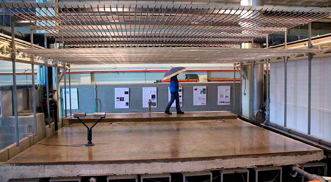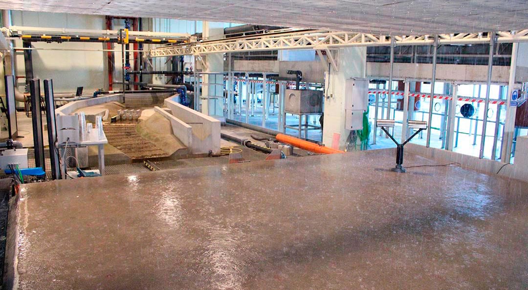 Respecto al saneamiento y drenaje urbano, el laboratorio cuenta con dos simuladores de lluvia de gran tamaño, 36 y 100 m2 respectivamente, en los que se simulan los procesos de transformación de lluvia-escorrentía que se dan en cuencas urbanas. Estos modelos también consideran el drenaje de la escorrentía generada a través de redes de tuberías y las interacciones que se producen con la superficie a través de pozos e imbornales. Los trabajos desarrollados abordan la modelización de los procesos hidráulicos involucrados incluyendo estudios de inundación, análisis del lavado y transporte de contaminantes en cuencas impermeables, y la implantación de técnicas de drenaje urbano sostenible (SUDS) para la mejora del sistema de agua urbana en términos de cantidad y calidad de agua.