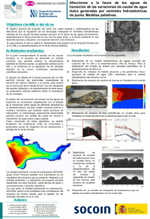 El objetivo general del proyecto era tener una visión integral y multidisciplinar de las afecciones que la regulación de las descargas realizadas en centrales hidroeléctricas situadas en los cauces fluviales pueden producir en la fauna de las aguas de transición, especialmente la fauna piscícola en los ríos de agua dulce, y la fauna existente en sus desembocaduras y estuarios, con especial atención a los moluscos. El caso práctico al que se aplicó la metodología del proyecto fue el conjunto formado por el río Ulla y su desembocadura en la ría de Arousa (Galicia).