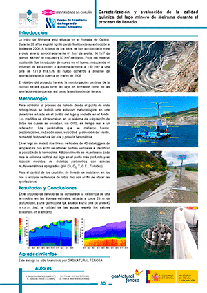 La mina de Meirama está situada en el Noreste de Galicia. Durante 35 años explotó lignito pardo finalizando su extracción a finales de 2008. A lo largo de los años, se han extraído de la mina a cielo abierto aproximadamente 81 hm3 de arcilla, 50 hm3 de granito, 44 hm3 de esquisto y 93 hm3 de lignito. Parte del material inutilizable fue introducido de nuevo en el hueco, reduciendo el volumen de excavación a aproximadamente a 150 hm3 a una cota de 171.3 m.s.n.m. El hueco comenzó a llenarse de aportaciones de la cuenca en marzo de 2008
