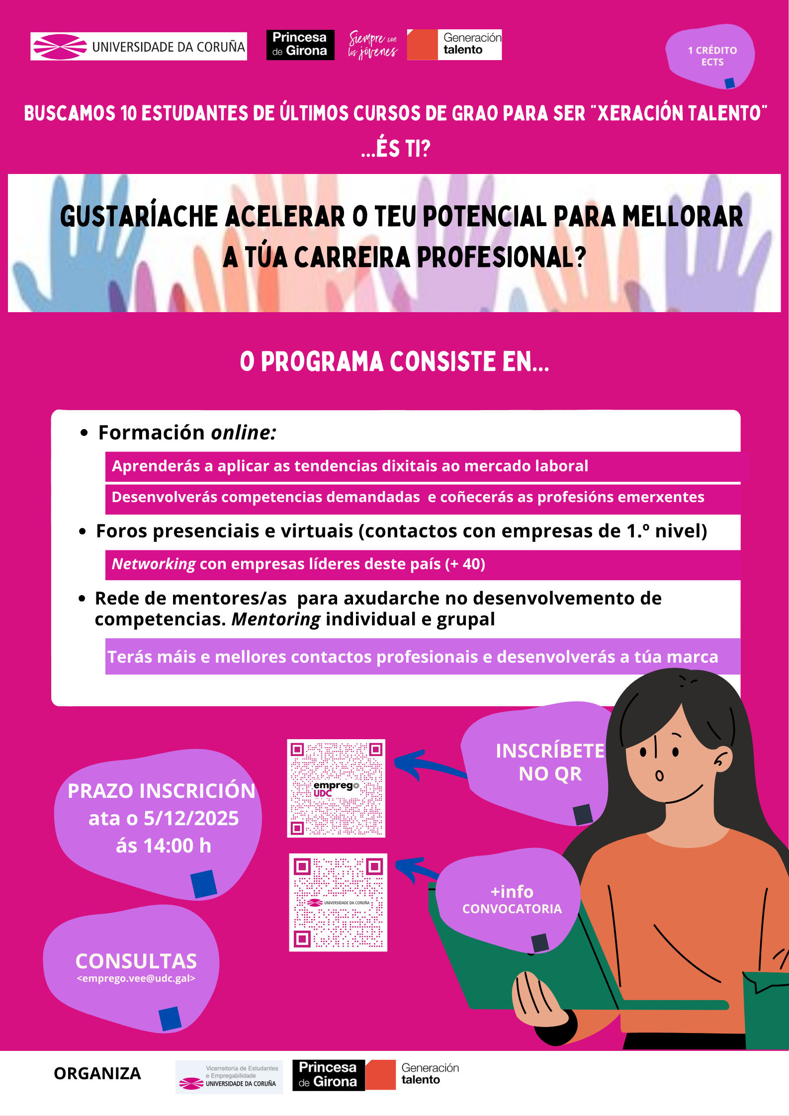 Programa XERACIÓN TALENTO da Fundación Princesa de Girona (FPdGi) coa Universidade da Coruña