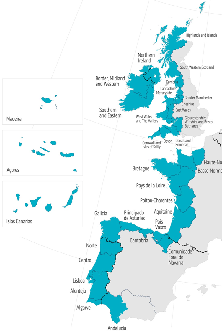 Promove a cooperación transnacional entre rexións atlánticas de catro países europeos (España, Francia, Irlanda e Portugal). O programa cofinancia proxectos de cooperación en diversos ámbitos como a innovación e a competitividade, a eficiencia dos recursos, a xestión do risco territorial, a biodiversidade e os bens naturais e culturais.