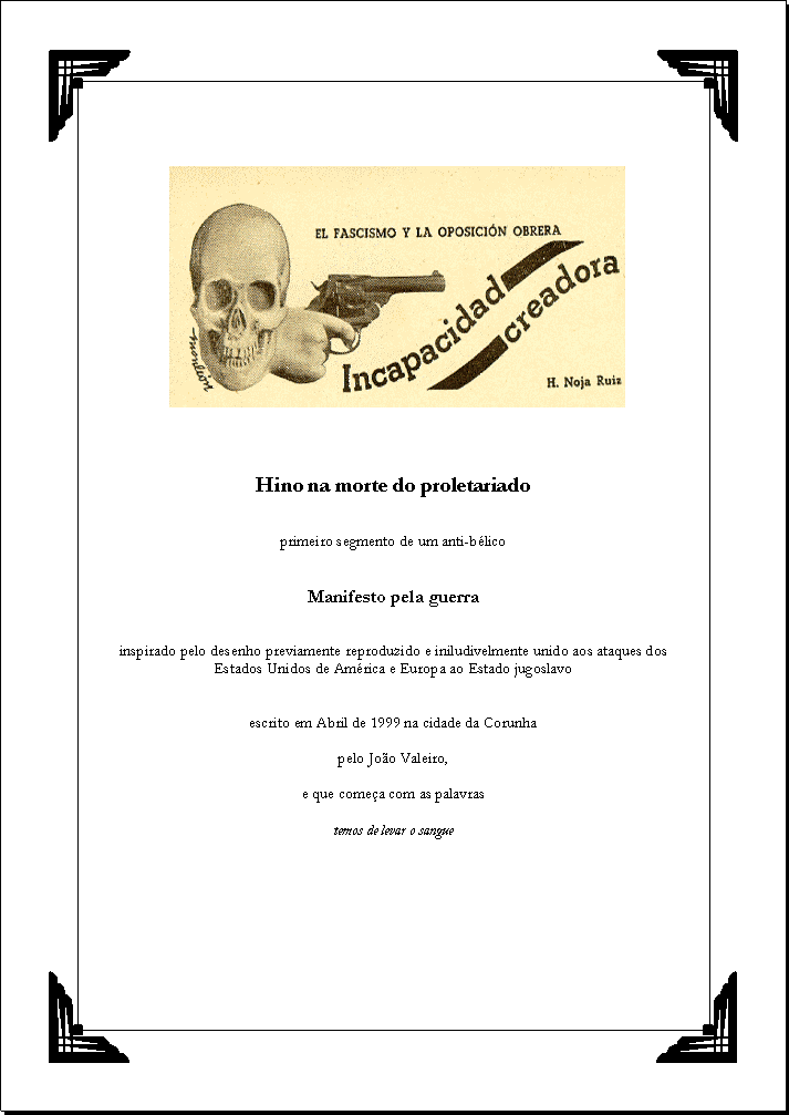 | Çopyright 71 - Kosovo e Sérvia: Uma guerra de classe: Tirando a força da desesperação: Uma entrevista a Ibrahim Rugova, por Marie-Françoise Allain Os Balcãs: Outra guerra de classe, Celso Alvarez Cáccamo | Çopyright 73: Dez anos depois: O regresso de Clausewitz, Miguel Leal |