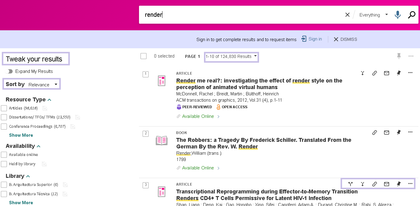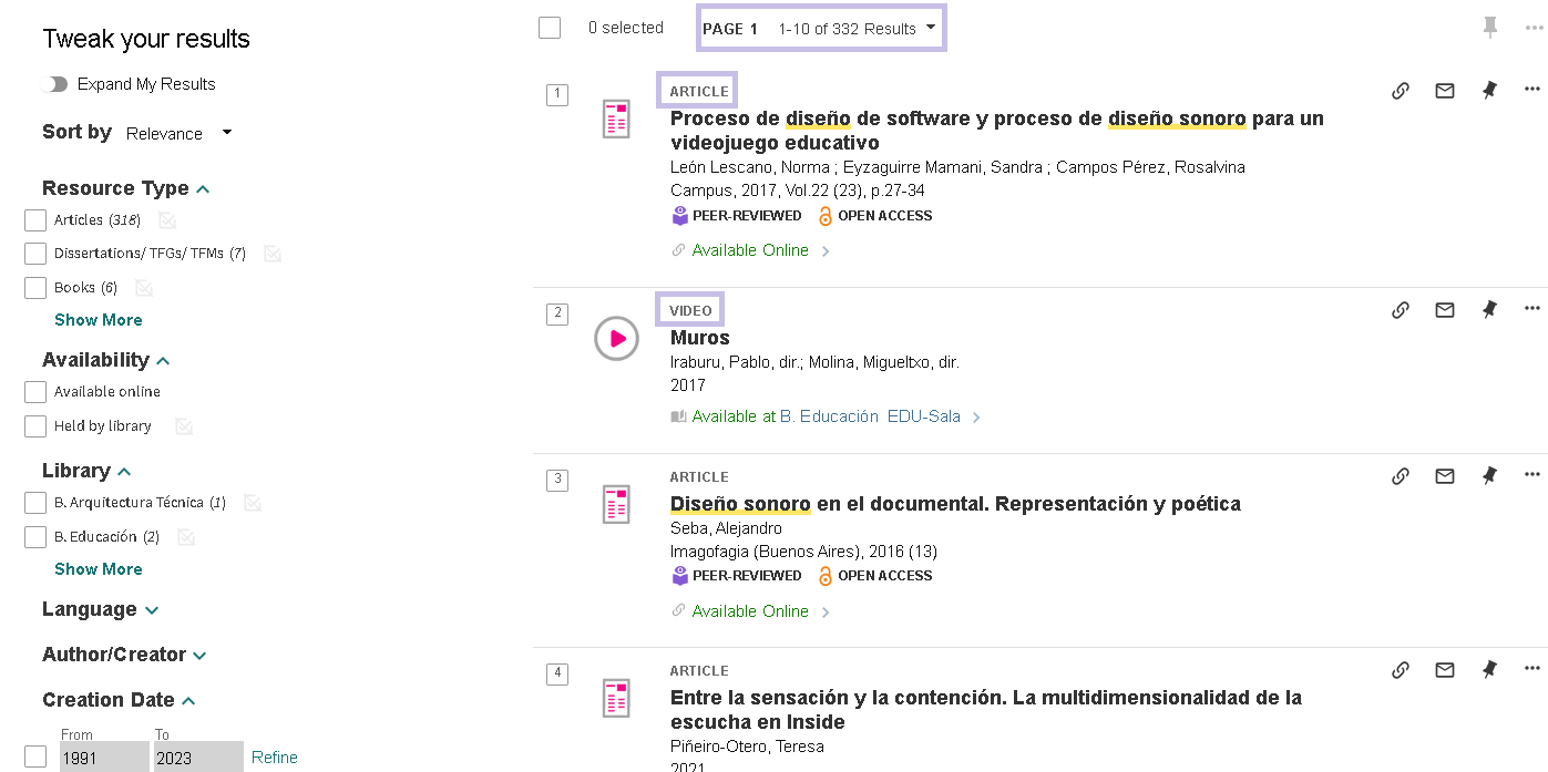 In addition to making appropriate search strategies that obtain the most relevant documentation, in a information retrieval is essential to interpret well the results returned by the search engine. That's why you need to understand the different screens and elements offered by the catalog.