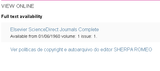 As it is a material with different characteristics to the books, in this case you won´t find the previous box in 5 columns, but information about which library receives it, what issues we have, whether it is opened or closed and its periodicity. You will also find a link to journal electronic version record if it exists.