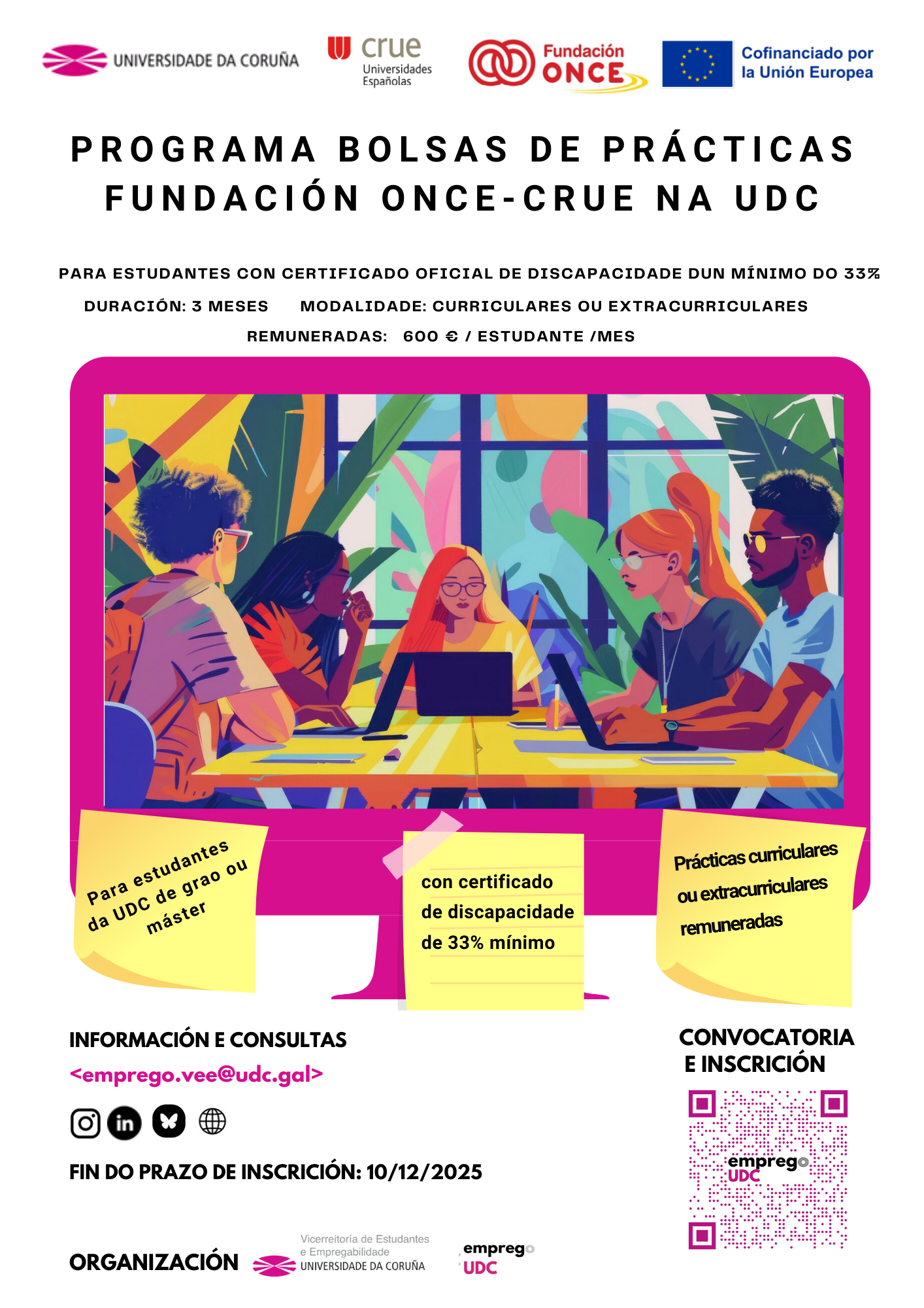 Periodo de inscrición para solicitar a bolsa: ata o 10 de decembro de 2025.
