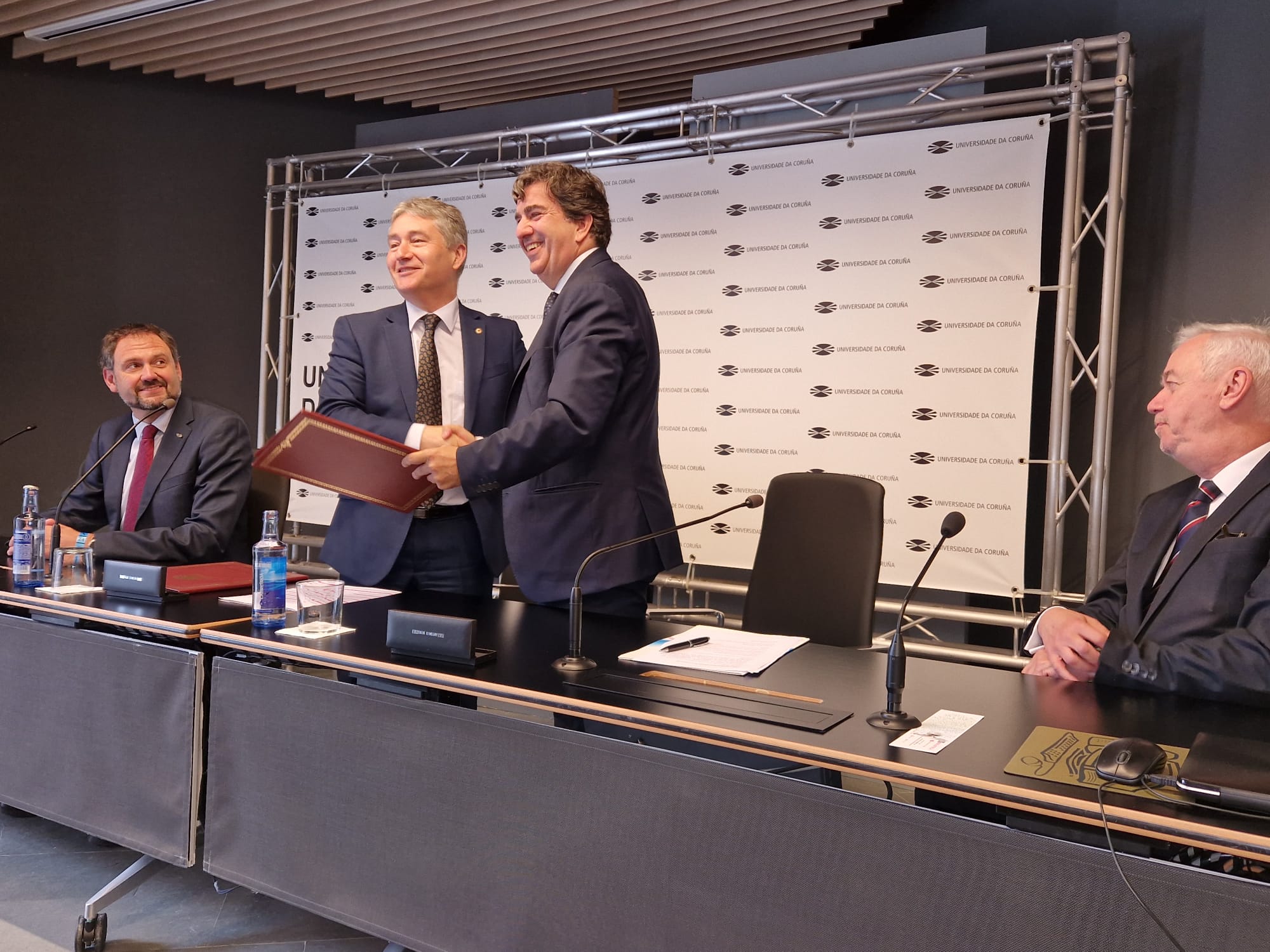 O convenio foi asinado polo reitor da UDC, Ricardo Cao, e o presidente da Autoridade Portuaria, Martín Fernández Prado, nun acto no que tamén estiveron presentes o xefe do Departamento de Sostibilidade da entidade, Andrés Guerra; e o investigador principal do proxecto e membro do Grupo de Investigación en Enxeñaría da Auga e do Medio Ambiente (GEAMA) da UDC, Enrique Peña, grupo a través do cal se asina o convenio.