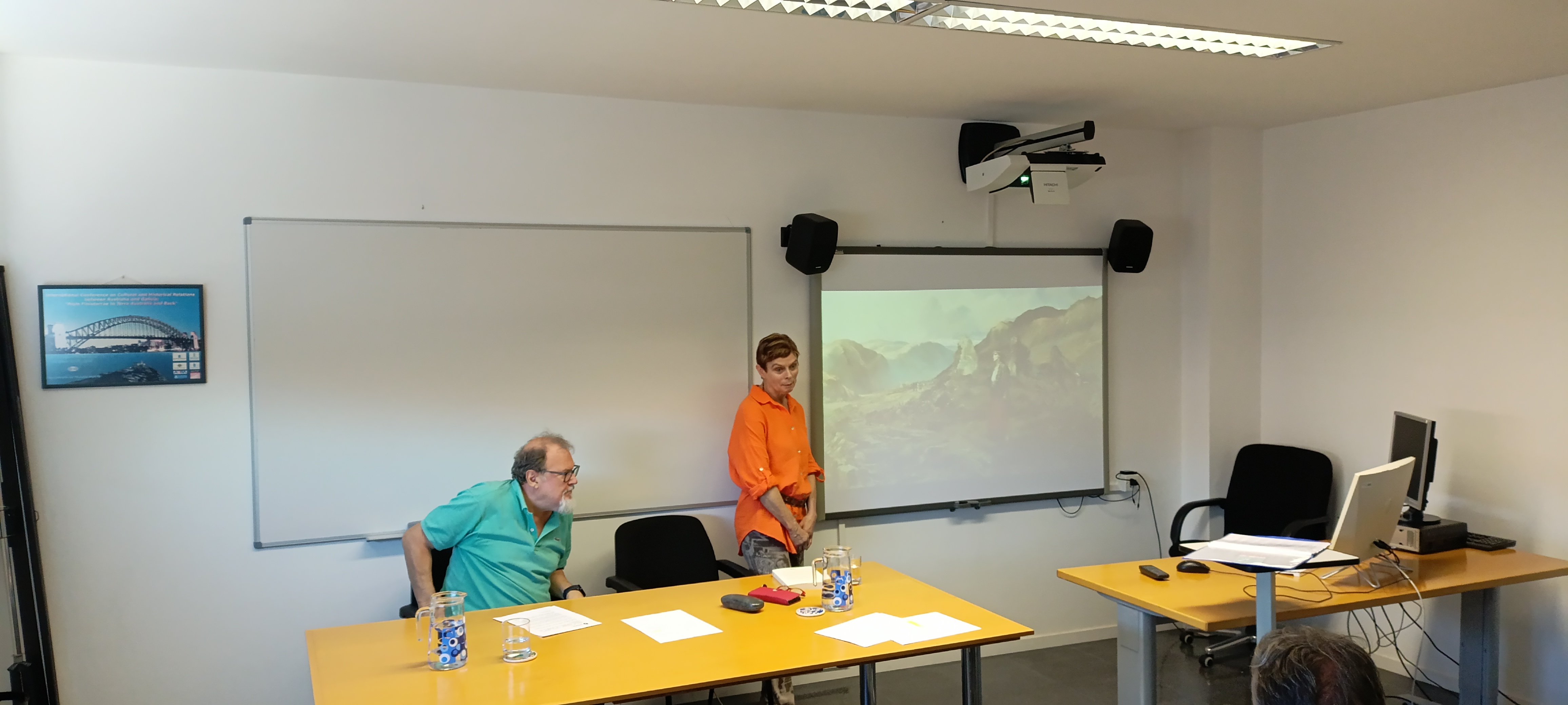 Amergin Research Institute Director David Clark presenting a gift to Maighread Medbh.