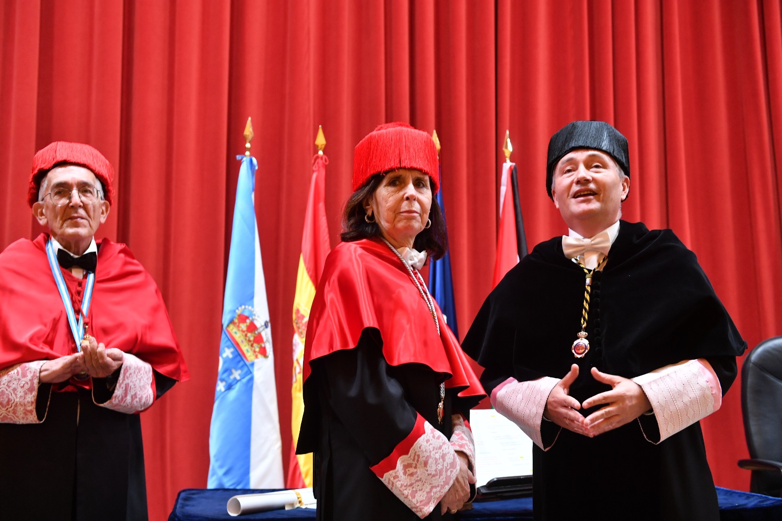 A Coruña, 3 de outubro de 2025.- A catedrática de Dereito, María Emilia Casas Baamonde, foi investida esta mañá Doutora Honoris Causa pola Universidade da Coruña, converténdose así na trixésimo primeira Honoris Causa da institución coruñesa nun acto, presidido polo reitor, Ricardo Cao, que contou tamén coa intervención do catedrático da UDC Jesús F. Martínez Girón, quen actuou como padriño desta cerimonia solemne.