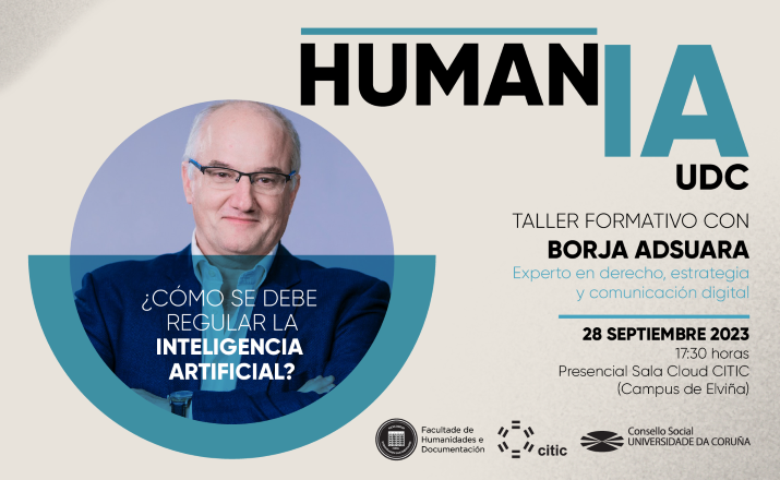 A Coruña, 28 de setembro de 2023.- Hoxe xoves, 28 de setembro, ás 17:30 horas, terá lugar na Sala Cloud do Centro de Investigación en Tecnoloxías da Información e as Comunicación da UDC (CITIC) o primeiro dos obradoiros organizados polo Consello Social e a Facultade de Humanidades da UDC en colaboración co propio CITIC, baixo o título ‘HumanIA UDC: O desafío para as Humanidades en tempos da Intelixencia Artificial’.