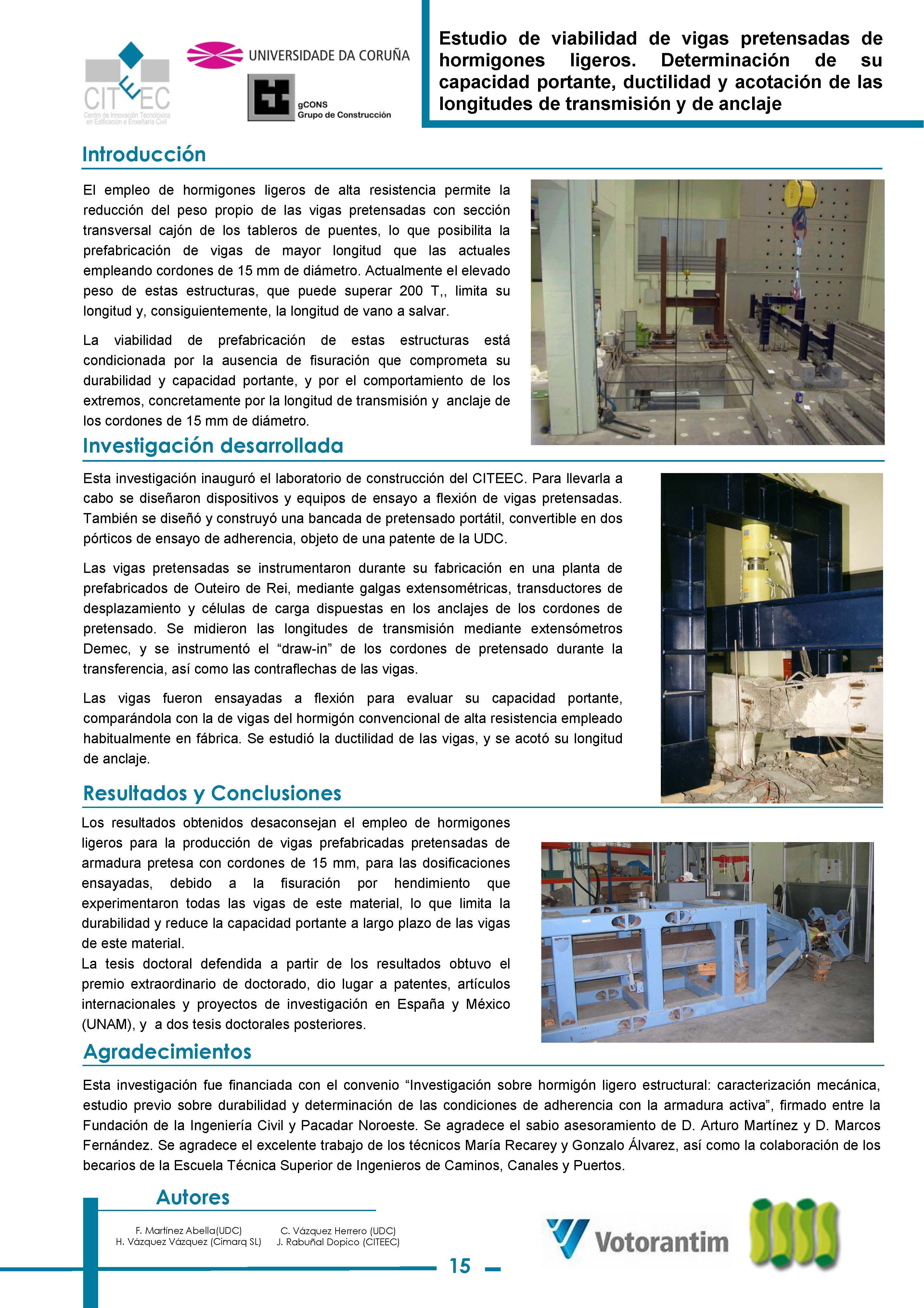 Durante a construción dos taboleiros postesados dos viaductos de Ou Marco e Ulló do Eixe Atlántico de Alta Velocidade, do tramo UTE Vilaboa (Aldesa e Arias Irmáns) aplicouse un novo procedemento baseado no método da madurez segundo a ASTM C1074-2011, denominado armature.és