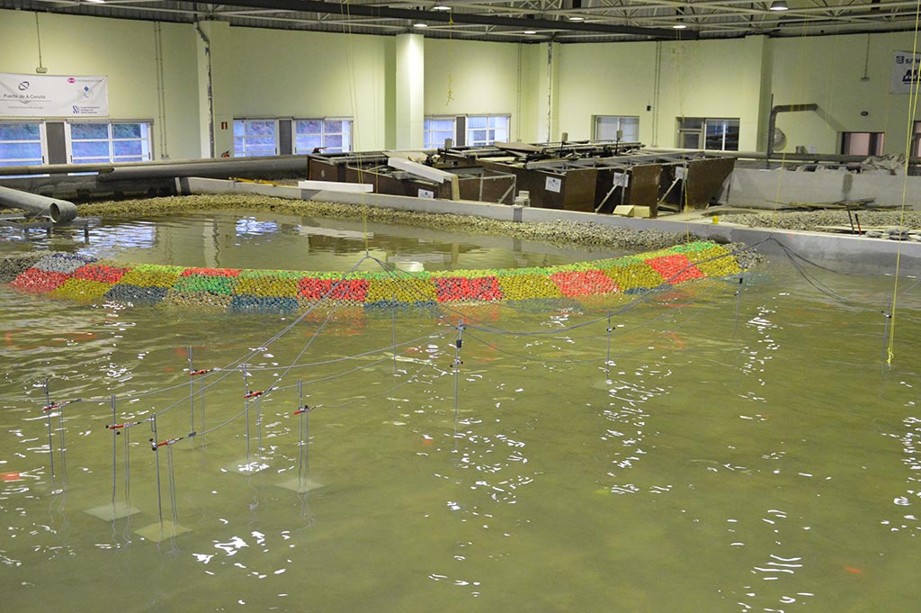 La complejidad de todos los fenómenos hidrodinámicos y turbulentos presentes en la interacción entre los diques flotantes, sus sistemas de unión y anclajes, y el propio oleaje hacen necesario la realización de ensayos en modelo físico para determinar con total precisión el comportamiento de los mismos.