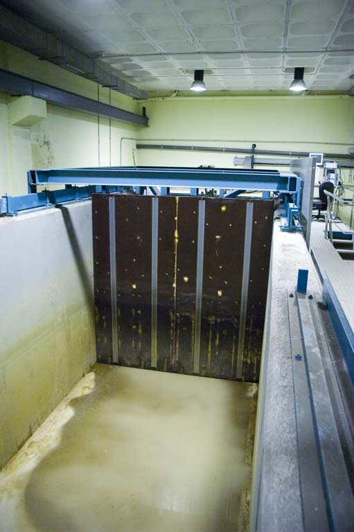 Waves generating blade in Shallow Waters: (shallow waters) of section [3x3] m, capable of generating waves up to 0.7m with a depth up to 2m.