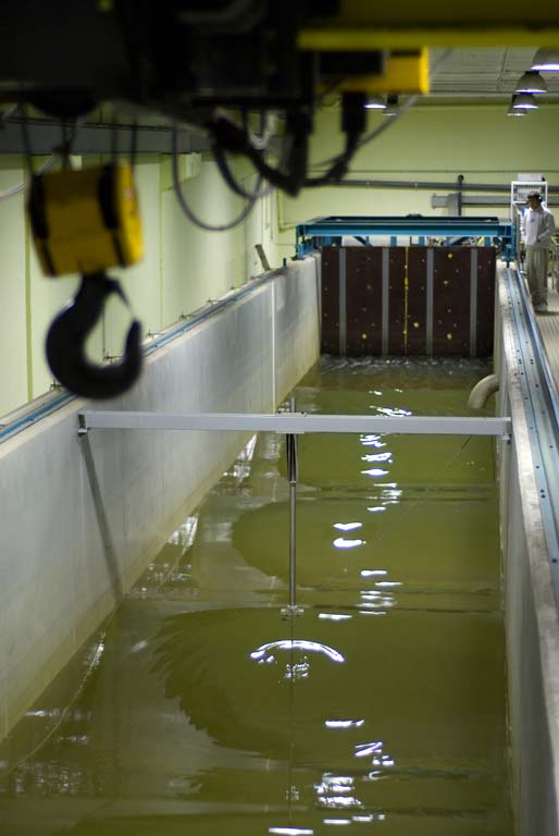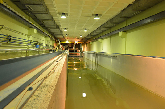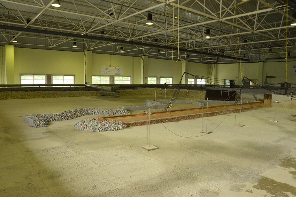 Currently, the second area of the wave basin has dimensions of 33 x 4 x 1.2m, becoming a wave channel. It also has a platform for placing models and improve the wave generation conditions.