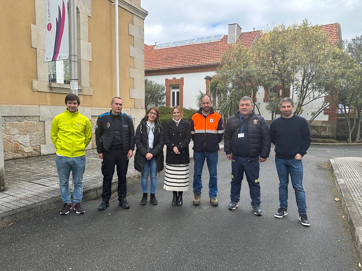 Foto: De esquerda a dereita, o xefe de Protección Civil de Ferrol, Alejandro Santiago; o oficial da Policía Local de Narón, José Antonio Carballido; a coordinadora do Proxecto Europeo COVALEX, a profesora da Escola Politécnica de Enxeñaría de Ferrol (EPEF) e investigadora individual do Centro de Investigación en Tecnoloxías Navais e Industriais (CITENI), Sonia Zaragoza, a concelleira de Mobilidade e Seguridade do Concello de Ferrol, Carmen Pieltain; o representante de Protección Civil de Narón, Jorge Prado; o inspector xefe do SPEIS de Narón, Rafael Pazos; e o coordinador da Cátedra de Emerxencias e Protección Civil da Universidade da Coruña, Daniel Lorenzo; ao remate da reunión de coordinación que tivo lugar o pasado venres no Campus Industrial de Ferrol.